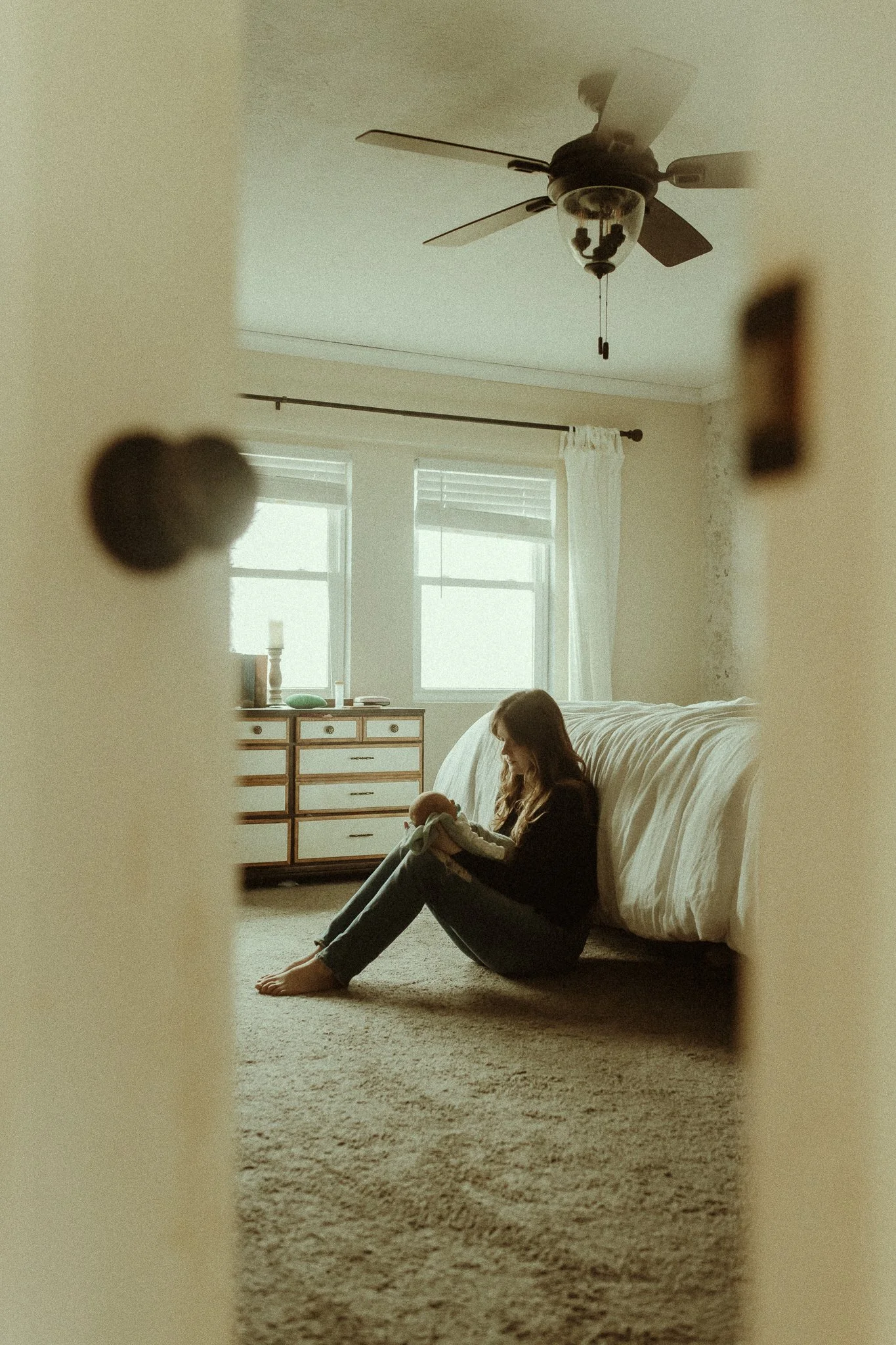Choosing outfits doesn’t have to be super stressful either. I have a few dress options for mom if she wants them. If not, put everyone in something neutral. Creams, blacks, tans. Jeans and a white tank with a sweater. Seriously, less is more for these. I also have had moms literally not want to think about being a photo, they just want a few details with their hands etc., and they plan another family session when baby is older and they (the mom) are feeling more like themselves. I’m telling you, there’s no right or wrong way to get in the frame. Just keep it neutral.